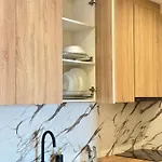 Das Apartment Stayin Tirana bietet seinen Gästen die Annehmlichkeiten von Selbstversorgern, wie eine voll ausgestattete Küchenzeile und einen Essbereich.
